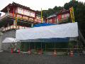 | 九州場所が近づくと、木勢部屋は毎年ここ稲荷神社を本拠地とします。まだ若者が準備をしている最中ですが、やがて見物客で賑わいます。けいこの風景を見たいものです。 | ![]() |
