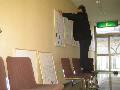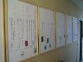 パネルの掲示を頑張りました。高さをそろえて、道糸で下げました。これまでの沿革史パネルとは比べ物にならないほど見栄えがいい掲示物です。縦90cm横60cmのパネル枚数は、9枚となりました。 | ![]() |