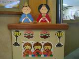 センター入口の2月飾りです。一番上にトールペイントのひな人形セットを置いたところ、Kさんが三人官女を並べてくれました。この三人官女はイラストを印刷したのですが、トールペイントにもなりそうですから、写真を撮りました。 |