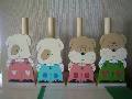 | 犬のペイント4個が完成しました。基本的に顔と服の組み合わせですから、似たような感じになります。配色がむずかしく、いつも悩みます。販売することを考えれば、淡い色・きれいな色がいかなと思っています。 | ![]() |