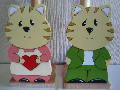 ネコのペイントを塗りました。新しい顔です。塗っているうちに下書きの線が消えるので、ヒゲを描くのを忘れました。こんなときはサインペンでごまかします。6月の展示販売を計画したおかげで、新しい図案も増えています。 |