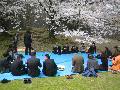 例年教育センターでは、伝統工芸会館前で花見昼食会があるということでした。勤務時間中ですから、残念ながらビールは出ませんでした。幕の内弁当の量が少なかったので、午後は空腹でした。来年は二段重ねをお願いします。 |