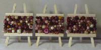 昨日収穫した帝王貝細工のつぼみを利用して、フォトスタンドやフォトフレームに接着しました。花の飾りを作るための接着剤は、ホットボンドです。2時間かけて、きれいな飾りが10個完成しました。 |