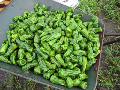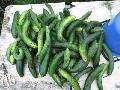 野菜セット13袋をトラックに積み、近所に配達しました。写真は、昨日収穫したピーマンとナスです。上のキュウリとともに、野菜13袋のセットにしたのです。いつも玄関口に置いて、ピンポンダッシュをします。 | ![]() |