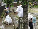 雨があがったから良かったものの、水がたまっていたのです。ずいぶん迷いましたが、こんなに人が集まるとは思いませんでした。木の根っこを掘り上げる人、ワラを家から持ち込む人、硬い土を掘る人、泥だらけで苗を植える人とさまざまです。感謝の気持ちで一杯です。この作業の写真を印刷し、公民館に掲示します。 |