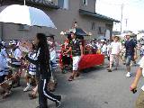 下代にはたくさん小学生がいます。全員参加の状態で、町内を一周します。 みこしは重いので、改造したリヤカーに乗せています。 |