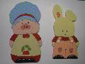 注文のトールペイントです。ブタはティッシュボックスになります。 ウサギはキッチンホルダーです。今年もこの二つは売れるはずです。 |