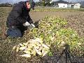 4時起床。寒い。ある校長の知人に、宇佐美さんという人がいる。この人は職員室に入るとき「う〜さみ〜」と言うらしい。さてと今日もトールペイントだ。現在ウサギとブタのペイントである。7時に完成したので、下に降りる。7時半に散歩、8時に新聞チェック、8時半に公民館の黒板記入。9時おでん朝食。9時半福井農園に出勤して、ダイコンの収穫をする。200本ほど抜いて、包丁で葉を切り落とす。このダイコンをビニ袋4枚に入れる。12時に帰宅する。お昼はパン屋のピザを食べたが、美味しくない。しばらくテレビを見ていたが、駐車場で板を磨く。ベルトサンダーは便利だが、新しい機械がほしい。私の身体に住みつく「買う買う虫」が騒いでいる。2時から2時間の作業となった。4時2階に上がり、トールペイントの組み立てを行う。ついに完成したので、イヌのペイントを始める。5時から散歩。帰宅して外出の準備。Uさんが迎えに来たので、近見町の「華鳳」へ行く。牛フンをたくさんもらったので、そのお礼の気持ちの会食である。ここは中華料理店で、とても評判がよい。ビールに焼酎、そして料理をたらふく食べた。2次会はUさん宅で行う。この先は意識不明で記憶がない。