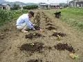 6時に起きてしまった。コーヒー飲みながら、夏祭の文書をチェックする。7時に散歩に出かけ、公園のチリ拾いをして帰る。朝食を済ませ、9時半まで板を切る。その後10時半、トールペイントを持って玉名市の草枕温泉「てんすい」へ。ここで物産館の責任者Nさんと話をして、委託販売ができるかどうかを確認する。サンプルがあったので了解してもらい、申込書を貰って帰宅する。天水町まで16km・25分(片道)なので、それほど遠距離ではない。12時過ぎから再び板切り。1時昼食。2時から福井農園へ出かける。エンドウ・タマネギ・ソラマメ・ジャガの収穫をする。商売繁盛・年金不足。その後草刈りをして4時半に帰宅する。野菜を持ってUさん宅へ行ったら、K先生もやってきた。5時半散歩で、6時半夕食。夜はくまモンを塗る。