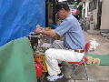 心地よく寝ている深夜12時半、チェリーが鳴いている。これは一大事と駐車場に行き、二人で散歩に出かける。雨が続いたので、ウンチを我慢していたようだ。なんと大きなウンチを出す。10m行ったら二回目のウンチ。チェリーが目で訴えている。「すみません。大きなモノを持たせて。」 家に帰り、ペイントのウサギ(大)を二つ塗り終える。くまモン(小)も塗り終えたので、2時半に再び布団にもぐる。7時起床。夏祭の資料を整理して、8時頃に再び散歩に行く。ベルトサンダーで□や凹の板を磨く。9時半にやめて朝シャン。近所のKさんちへ行き、夏祭の出演を依頼する。OK 次は自治会長宅へ行き、夏祭の電気配線工事の件を連絡する。打合せをして帰宅する。R子さんがスイカを持ってくる。感謝!11時からはペイントの組立てをする。12時に昼食を済ませ、出勤。早めに出たのは、「城彩苑」に行くためである。ドーナツ棒5箱をゲット。センター到着。しばらくしてミーティングあり。その後拡大印刷や指導案の数を調べる。7時に退勤。彩香に温泉くまモンをプレゼント。夕食。ペイントを少しして休む。