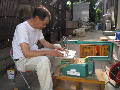 5時起床。夏祭の準備をパソコンで行う。ついでにローズマリーにくまモンの写真を送付する。ホームページの入力をして散歩に出かける。最近は愛犬が道路で休憩するので、長くは歩かない。8時から駐車場に行き、ベルトサンダーで板をみがく。□や凹の形を30枚ほどピッカピカにする。9時半になったので、トラックで川尻の加瀬川遊歩道に行く。定例の「大手永市」を見学する。ちょうど「くまモン」も来て、愛嬌をふりまいていた。教え子数人とおしゃべり。町おこしの会長さんにもご挨拶。11時に帰宅して、ピーナツの選別作業をする。昼食。12時半から駐車場で板を切る。ときどきコーヒータイム。小学校のT先生がアガチス材を持ってきた。板切りを続け、3時半に終わる。くまモン20枚を切りぬく。4時畑へ行き、ピンポン玉のようなタマネギを収穫する。家に戻ると、Uさん親子がスイカを持ってやってきた。スイカは大好き。チェリーの散歩を済ませ、夕食とテレビ。ひな人形工作をして、9時半消燈。