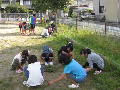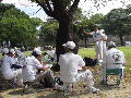 7時起床。急いで着替えて、グラウンドゴルフの準備をする。7時半に公民館から「下代公園清掃日」の放送を入れ、公園でチリ拾いをする。子ども会も集まり、一緒に草取りをする。参加者は33人。8時半に作業を終了し、今度は城山半田の河川敷へ急ぐ。9時から校区のグラウンドゴルフ大会に参加する。2ゲーム済んだ結果は、最下位に近い。一度だけホールインワンを決めたが、焼け石に水であった。参加賞を受取り、11時半に帰宅する。昼食はチャーハン。再び着替えて、バイクでお城の笹園へ急ぐ。1時から肥後ちょんかけごま保存会の定例会に出席する。今日は「ねんりんピック熊本大会」の打合せで長引く。2時になったので、近くの城彩苑に行ってみる。ここの小間物屋「雅(みやび)」に委託販売を申し込んでいたが、店長さんが了解してくれた。感動!! 隣の「てんて」でマンゴーかき氷を食べる。気持ちよくバイクにまたがり、近見町のロックタウンへ行く。タマゴを買って3時半に帰宅する。しばらくして板切り開始。彩香が遊びに来る。退屈しているようだ。ブドウをもらう。母親と車で来たが、母親は運転が下手である。散歩に行き、6時に晩酌。家族が借りてきたビデオ「ヤマト」を見る。主演はキムタクだが、俺によく似ている。10時消灯。