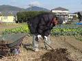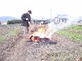 今日も草焼きです。枯れ草は場所を取りますが、焼けば灰だけになります。草木灰はカリ肥料ですから、ビニ袋に入れて保存します。根菜類にすばらしい肥料ですが、雨が降ると肥料分が流れるので、イモの植え付けまで大切に保存するのです。 |