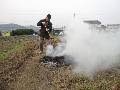 職場から畑に直行して、すぐに草焼きをします。 5時くらいから北西の風が吹き、煙は白川へ流れます。 |