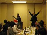 センターの忘年会です。皆さんの期待に応えて、ちょんかけごま・硬貨の問題・一発芸・綱渡りごまと頑張りました。私の芸はワンステージ1万円ですが、今回もボランティアになりました。最初から最後まで見てくれて嬉しかったです。 |