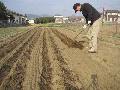 耕運機で1列耕し、溝を掘ります。 4列です。1列に2キロのジャガです。 |