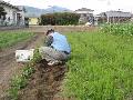 ジャガの草取りを続けています。 スギナが生長を妨げています。 |