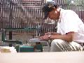 気合を入れて、駐車場で板切りをします。