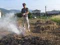 草焼きをしています。大量の枯れ草が気になります。 草木灰はそのままカリ肥料です。 |
