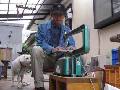 駐車場で板切りをしました。 チェリーがおやつの催促をします。 |