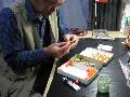 作業室で釣り用のうきにパーツを接着しました。 これはひな人形のボンボリになります。 |