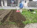 サトイモは5列植え付けました。隣の空き地を耕しました。 ここにツルナシインゲンを2列種まきです。まだ種はあります。 |