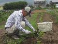 4時起床。今日は何をするか、メモを見て考える。コーヒー入れて、食器の整理。パソコンに向かって、ホームページの入力をする。5時半には更新終了。燃やすゴミ4袋を所定の場所に出す。チェリーの散歩を済ませ、庭で土の処理をする。朝食・炊事。再び庭で作業をする。8時から福井農園に行く。@ジャガ周辺の草刈り。A西2の草刈り。ピーマンの草刈り。Bジャガ掘り。しかし、ジャガよりもスギナの根っこがたくさん出てくる。バケツ一杯収穫したので、次はツルナシインゲンの初収穫をする。帰宅して銀行に行く。大金を入金したが、私のお金ではない。畑に行って花苗を持ち帰る。この花を玄関前の花壇に定植する。夏祭りにうちわがいるので、熊本市に電話する。今年は検討中とのこと。