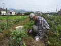 北の畑でサトイモの草取りです。 少しずつ生長していきます。収穫は12月。 |