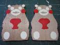 くまモン塗りの途中です。最初は白で塗ります。 次が赤です。このあと輪郭をテンプレートでとります。 |