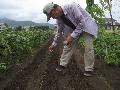 昼食はラーメン定食。テレビを見たり、くまモン塗りをする。2時「ヒロセ」でダイコンの種を買い、福井農園に出発。ニンジンの種まきをする。前回の種まきは失敗だった。3袋を3列にまく。明日からの雨に期待する。キュウリとナスの収穫をして、近所に配る。散歩して夕食。くまモン塗りをしていたが、テレビドラマに引きつけられてしまった。10時半消灯。