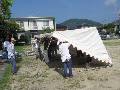6時過ぎに起床。コーヒー飲んで散歩に行く。公園入口の車止めのパイプを外しておく。夏祭りの準備を少しする。8時朝食を済ませ、荷物のチェックをする。しばらくして公民館へ行くと、すでに軽トラックにテントセットの積み込み中である。長机10脚も公園に運ぶ。9時には20人くらい手伝いが来たので、まずはテント五張りの組み立てである。のぼりや提灯も飾る。10時過ぎには完了したので、福引券をお礼として渡す。帰宅して熊工の試合を観戦する。勝ってよかった。