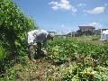 6時起床。散歩に行ったら、愛犬は道路に落ちていたスズメを食べてしまった。公園で薬剤散布をして、こまの練習もする。朝食。9時に再び公園に行き、プランターに水かけをして肥料をまく。10時今度は福井農園に行く。2列めのキュウリの後片付けをする。ネットも処理をする。ナスとピーマンを収穫して、さらにサツマイモを掘る。12時に帰り休憩。