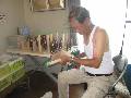 昼食。野球を見ていたら、「ローズマリー」から電話あり。久しぶりにくまモングッズの注文だ。気合いを入れて、アガチス材を2時間切る。ガソリンを買って畑に持ち込む。野菜の収穫と作業を少し。5時に長男夫婦がきたので、一緒に花岡山に墓参りに行く。帰宅して夕食。11時までくまモン塗りをする。