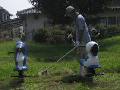 公園の草刈りは二回目です。全部は無理です。 子どもの遊具近くを刈ります。草むらは恐いです。 |