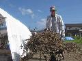 6時半起床。車にガソリンを入れて、畑のポリタンク6個を持ち帰る。ポリタンクに水を入れる。ポリタンクは古くて、内側にコケがついている。ジョウロに水を入れるとコケも入り、目詰まりを起こす。そこでコケが入らないように、ネットを利用して工作をした。必要は発明の母だ。ポリタンクを畑に持ち込む。朝食・炊事・散歩。しばらくして福井農園に行く。今日も種まきだ。西と北にインゲン・ダイコン・ニンニクの種まきをする。途中で「ヒロセ」に行き、石灰と花の種を購入する。