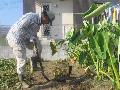 6時起床。アイスコーヒー飲んで、燃えるゴミ出し4袋。愛犬の散歩を済ませて朝食と炊事。駐車場に行ってベルトサンダーで板を磨く。さてと福井農園だ。9時から作業開始。ツクネイモにたっぷり草木灰をかける。次は耕した西1・西2・北の畑に石灰をまく。これはマメ類の準備だ。残りのナスの株を引き抜いて、12時に帰宅する。