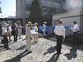 緑化コンクール基準校の白川中に集合しました。 審査員20人以上が校庭の樹木等を審査します。 |
