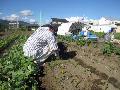 枯れ草を積んでいる場所に、少しずつ土が残りました。 ほりあげてジャガイモに乗せました。草の種は多いのですが。 |