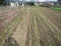スナップエンドウに支柱とネットを準備。