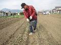 福井農園でニンニクに肥料をまきました。 種は中国産、収穫は日本産になります。 |