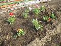 ニンニクとタマネギに肥料をまきました。 どちらも元気よく育っています。6月収穫。 |