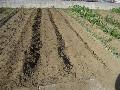 サトイモの畝に牛ふんと肥料を与え、土をかけました。 収穫は11月になります。半年以上かけて育てます。 |