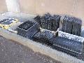 使用していないポリポット・ケース・育苗箱を集めました。 ここは中庭ですが、一日中日陰になっています。 |