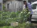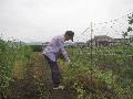ソラマメの茎を引き抜きながら、残りの収穫です。 恩師とのバーベキュー用に1列残しました。 |