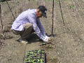 昼食・休憩。1時から福井農園に出かける。インゲンの初収穫をする。ゴムマットやエンドウのツルをゴミ袋に詰める。4個完成。ニンニクの芽をハサミで切る。ついでにピーマンの脇芽を切ってしまう。育苗箱で生長している鷹の爪を北Cに50本ほど定植する。いづれはりはり漬けに使おう。5時半に帰宅して、今日も楽しい晩酌タイムだ。テレビを見て、9時過ぎに休む。