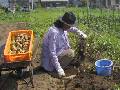 ジャガイモ掘りです。雨が少ないので助かります。 ジャガイモ掘りも要領がよくなりました。残り2列。 |