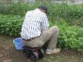 北と東のインゲンをたくさん収穫しました。 位置が低いので、車椅子を使っています。 |