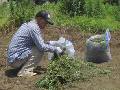 昨日の刈り草を袋に詰めました。 単純な作業ですが、暑かったです。 |