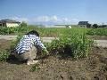 ツクネイモの草取りをしました。 ツルの誘引が必要です。 |