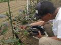楽しいナスの収穫です。 美味しい長ナス品種です。 |